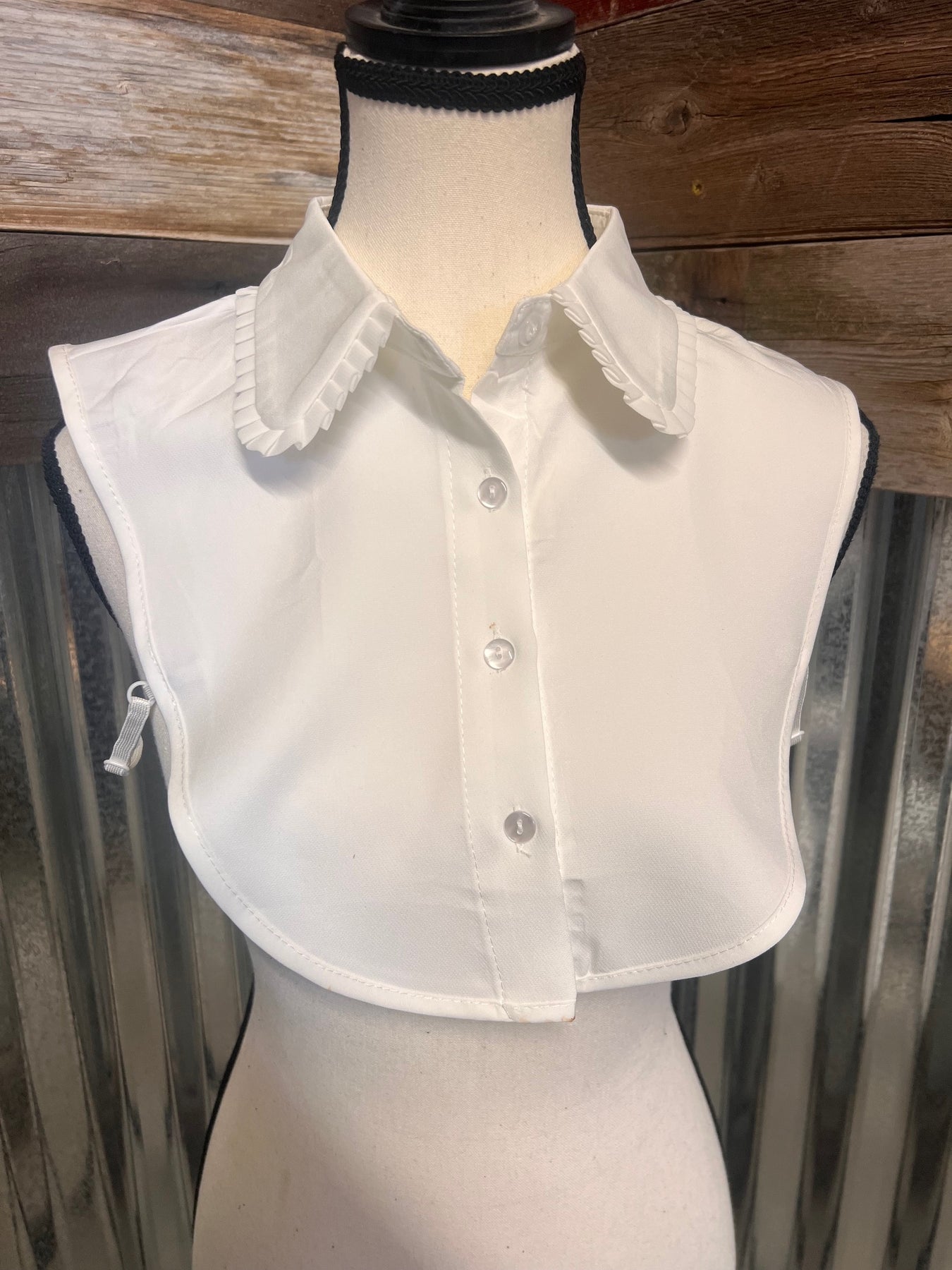 Classic, crisp, and effortlessly charming our white ruffled collar dickie is the perfect layering piece for a polished western look without the bulk of a full shirt. Designed to sit smoothly under sweater, jackets, snap shirts, or dresses, this half shirt adds a timeless collared finish in seconds.